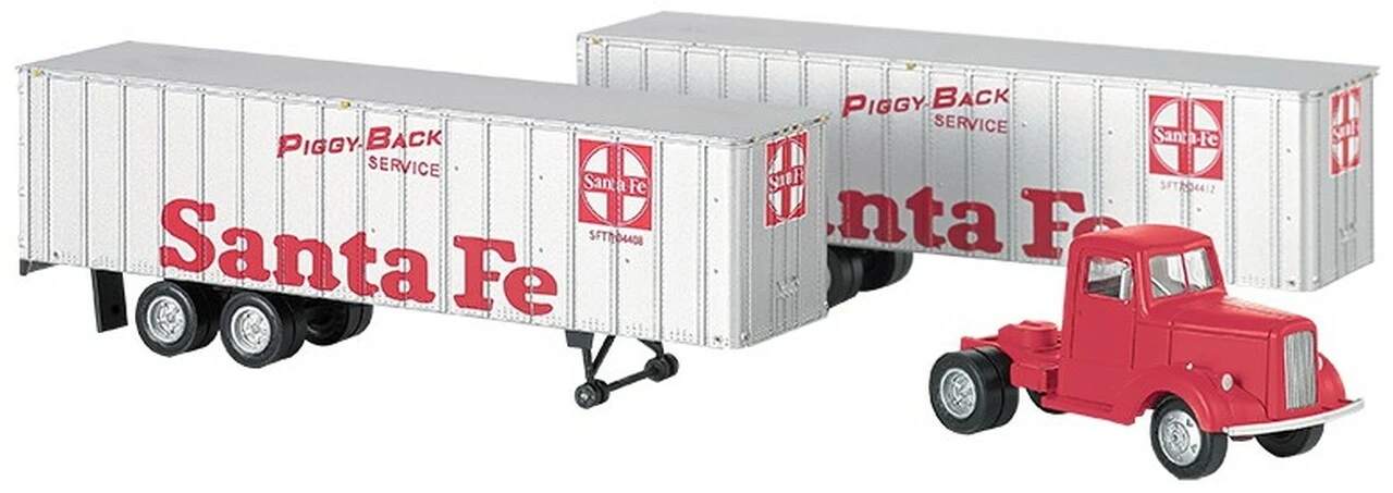 1950s-60 Truck Cab w/2 Piggyback Trailer Santa Fe HO Scale Bachmann Trains