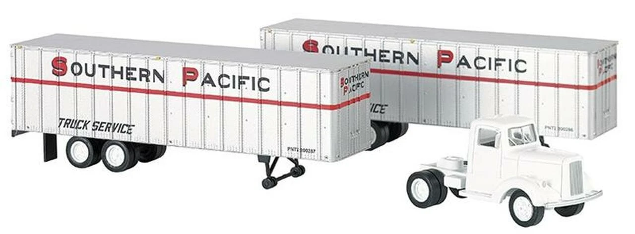 1950s-60 Truck Cab w/2 Piggyback Trailer Southern Pacific HO Scale Bachmann Trains