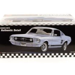FEATURE PACKED: The 1967 Mustang GT Fastback is a historical muscle car that stands alone! Fully paintable, it features authentically detailed water-slide decals. Build it upright with a Ford 289 V8 engine, Firestone Wide Oval tires, chrome wheels, optional Cobra valve covers, bucket seats, and more. Wrapped up nicely in retro-styled packaging!