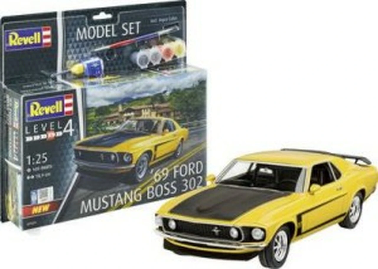 1969 Ford Mustang Boss 302 Car w/paint & glue 1/25 Revell Germany