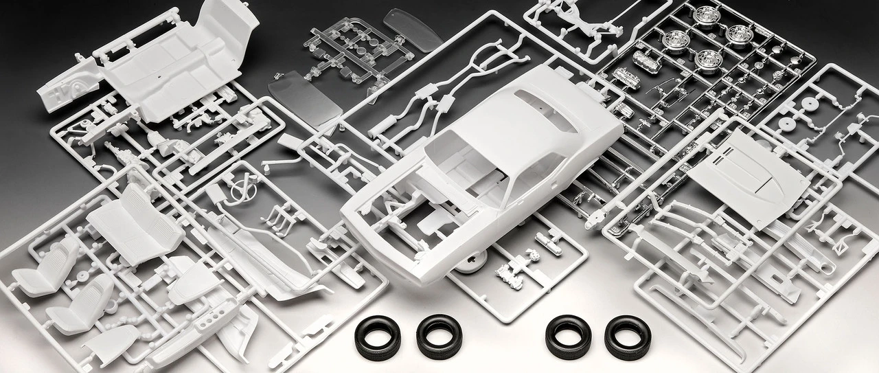 Plastic model kit starter set. Includes acrylic paint, brush and cement required for assembly