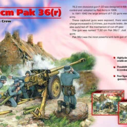 The 76.2mm divisional gun F-22 was adopted by the Red Army in 1936. It was a semi-universal gun with the possibility of anti-aircraft fire. In 1939 it was discontinued due to being too complex and heavy. A total of 2932 were produced. In 1941 and 1942 a large amount of F-22 guns were captured by the German Army. They were modified with a bored chamber, an increased charge, added muzzle brake and decreased elevation. It was re-named the 7.62cm PaK 36(r) and it was the most powerful anti-tank gun of the Wehrmacht until 1943.