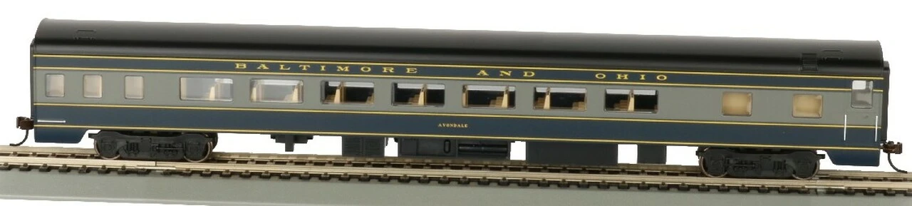 85′ Smooth-Side Coach W/Lighted Interior Baltimore & Ohio Avondale HO Scale Bachmann 85′ Smooth-Side Coach w/Lighted Interior Baltimore & Ohio Avondale HO Scale Bachmann