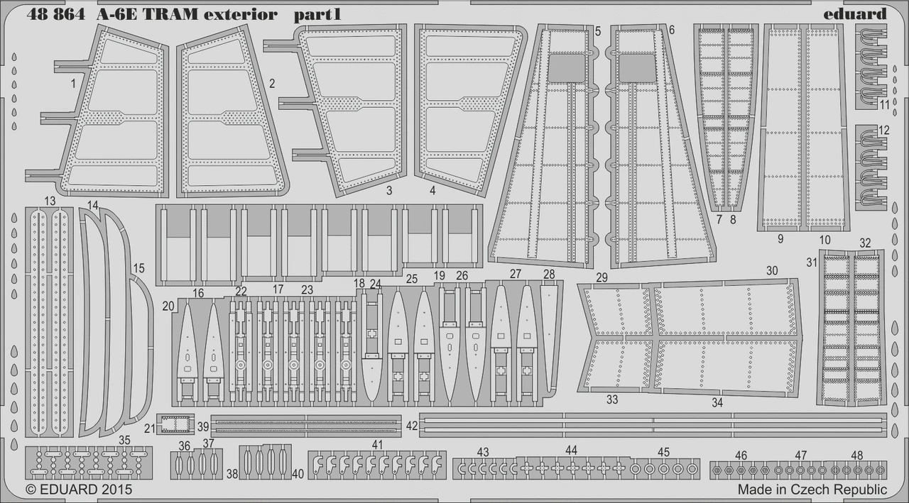 Photoetched detail set for Hobby Boss’ 1/48th scale A-6E TRAM. Includes 2 sheets of parts.