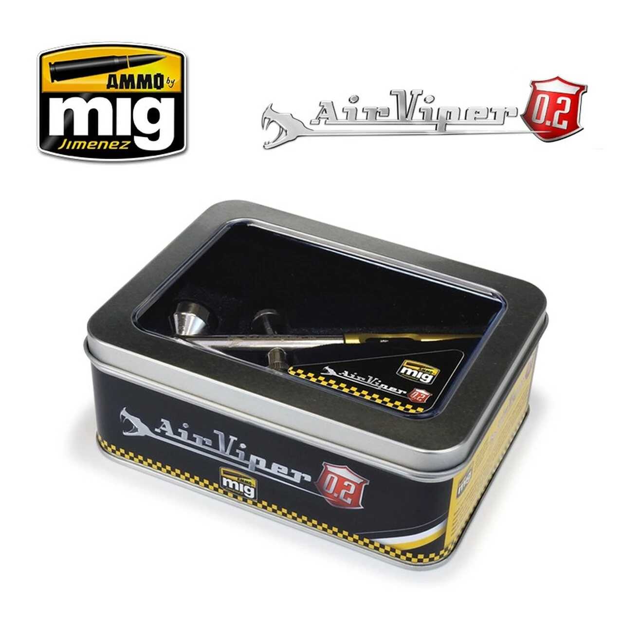 We are pleased to announce a new member to the AMMO by Mig Jiménez family of modeling resources, the AIRVIPER, a new airbrush that will allow modelers to perform fine detail and precision work with ease. The 0.2mm nozzle/needle combination make it possible to spray extremely fine lines with complete control.