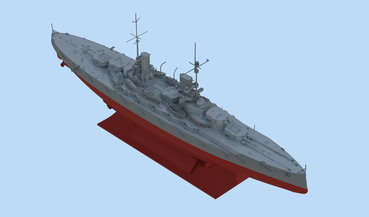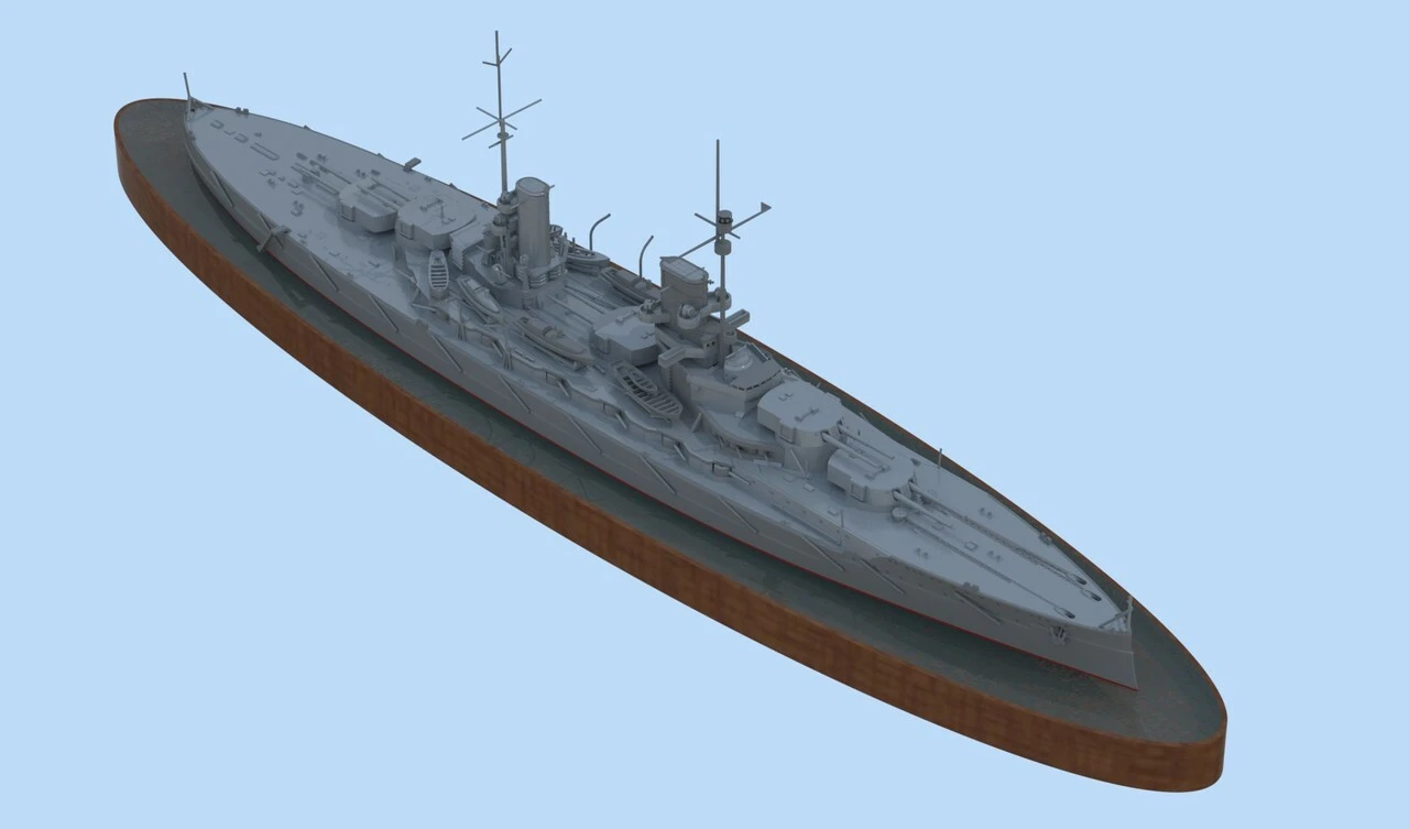 Battleship Groβer Kurfürst belonged to the Konig class of the Kaiser German Navy during WWI. It was first laid down in 1911, launched in 1913 and commissioned in 1914. Battleships of the Konig class were mighty vessels, excellently geared for North Sea conditions. The four sister ships formed the 3rd Squadron of the Open Sea Navy (Hochseeflotte). This squadron took part in all battle operations of the Open Sea Navy after WWI started. One of the sorties caused the Battle of Jutland, which lasted for two days and was the greatest and fiercest sea battle of WWI. The British battleships Warspite, Valiant and Malaya were severely damaged by 3rd Squadron fire.