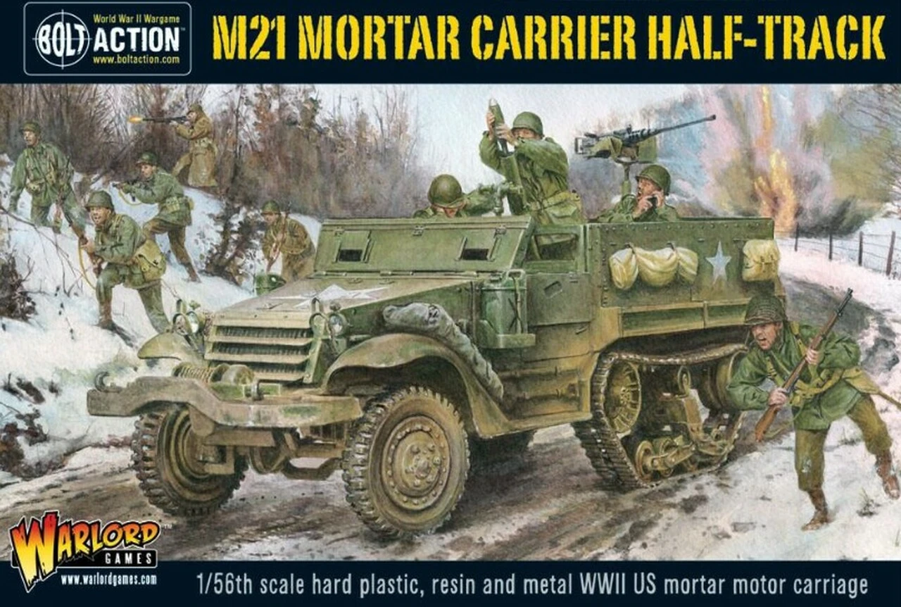 This multimedia kit includes resin, plastic, and metal parts to make an M21 Mortar Carrier for use in Bolt Action or other 28mm wargames.