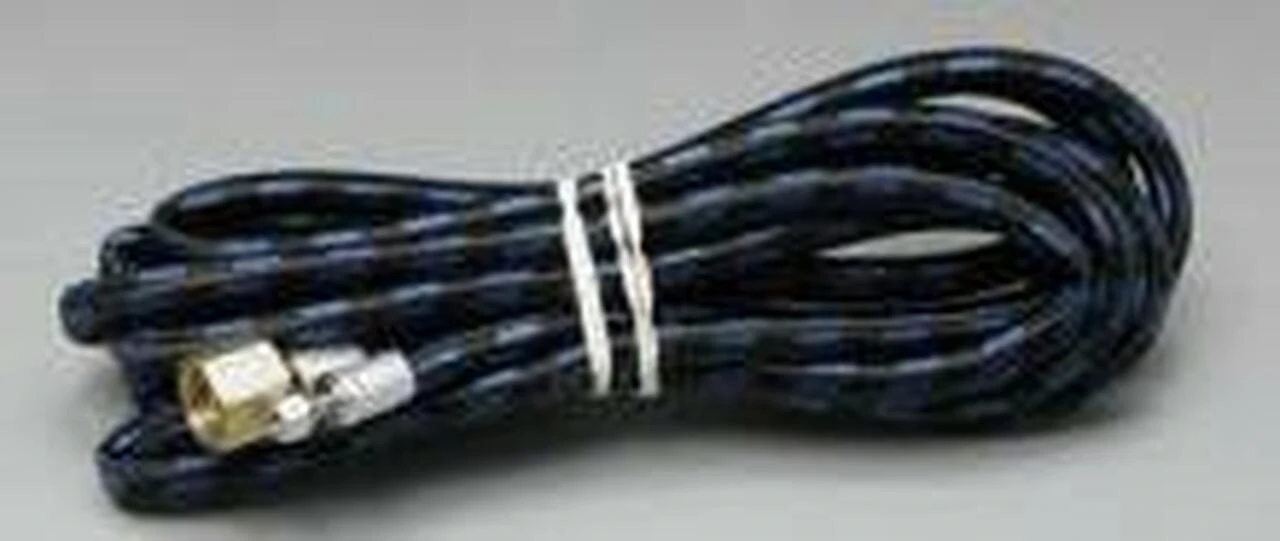 Used to connect airbrush to air compressor. Durable rubber air hose in braided fabric housing. Swivel connection for airbrush at one end and varying air source connector fitting at opposite end.