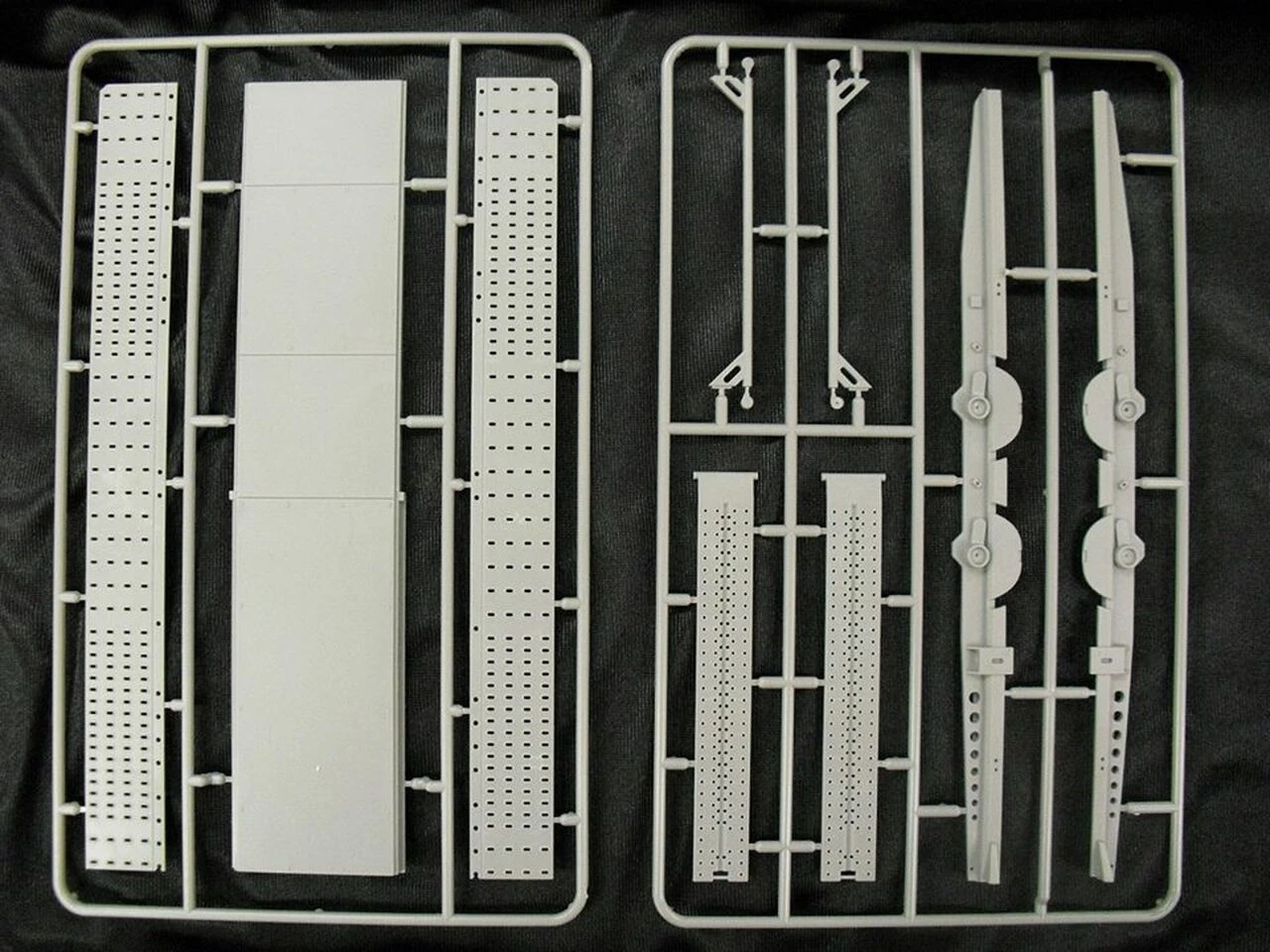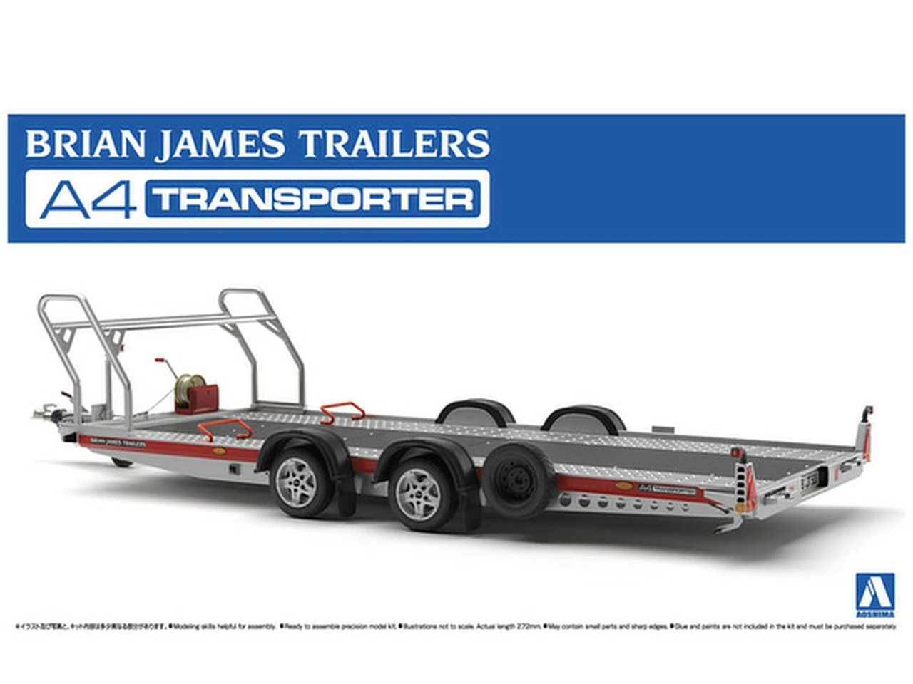 This kit is a 1/24 scale auto transport trailer made by Aoshima. This item is a plastic model kit. Assembly is required and glue and paint are required for assembly (and sold separately).