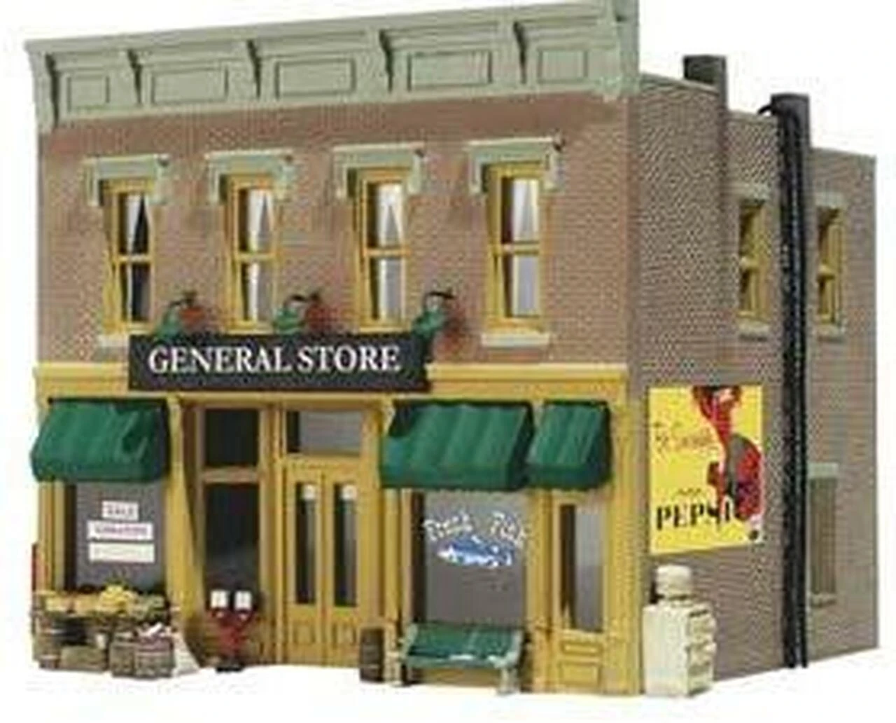 Set Built-&-Ready structures on your layout right out of the box! Set Built-&-Ready Structures on your layout right out of the box! Every layout needs a general store – the social hub of early-day, rural America. Lubener’s General Store is where town residents can play checkers and chat, while others shop for groceries, household items and sundries. Building details include awnings, bubblegum dispensers, signs, curtains, light fixtures, and lit interiors with a printed background scene. The installed LED lighting is made for use with the Just Plug® Lighting System. 25mA RoHS Compliant.
