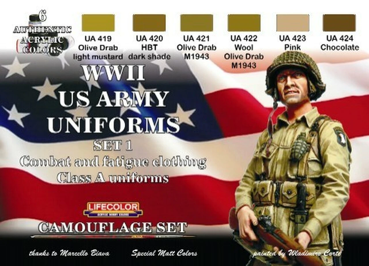 Camouflage US Army WWII Combat, Fatigue, Class A Uniforms Acrylic Set #1 (6 22ml Bottles) Life Color Camouflage US Army WWII Combat, Fatigue, Class A Uniforms Acrylic Set #1 (6 22ml Bottles) Life Color