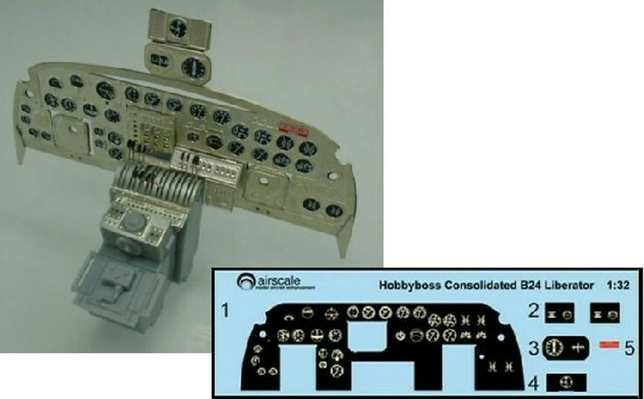 Upgraded high fidelity etched Nickel Silver Instrument Panel set to suit the Hobbyboss B24 Liberator kit.