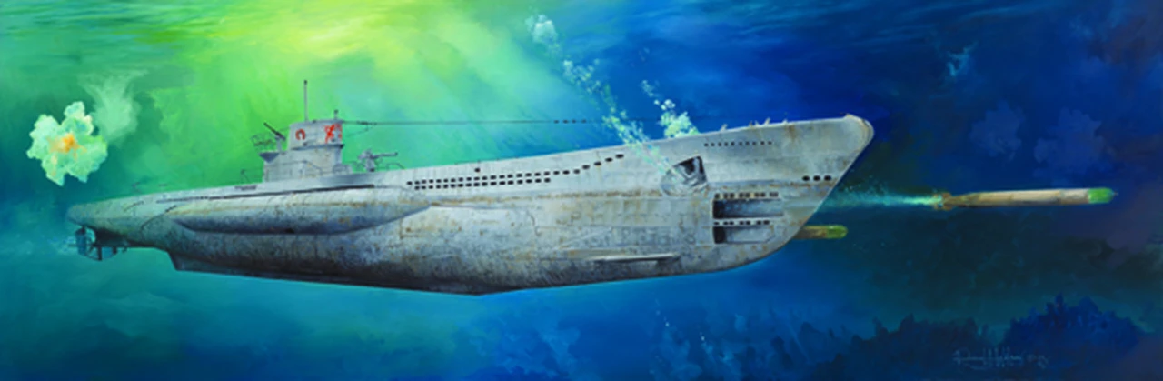 A total of 568 Type VIIC U-boat (Unterseeboot) of the German Navy submarine fleet were launched between 1940 and 1945, starting with U-69. Type VIIC was in operational service early in WW2 near the end of the Battle of the Atlantic, the so-called “First Happy Time” when U-boats inflicted heavy losses against the British Royal Navy and Allied shipping. Between January and August 1942, German U-boats struck US Navy & merchant shipping in a phase of WW2 known as the “Second Happy Time” in the Atlantic off the east coast of North America, causing heavy losses. Type VIIC was the most numerous submarine in service when Allied efforts finally defeated the U-boat campaign in late 1943 and early 1944.