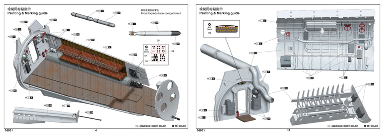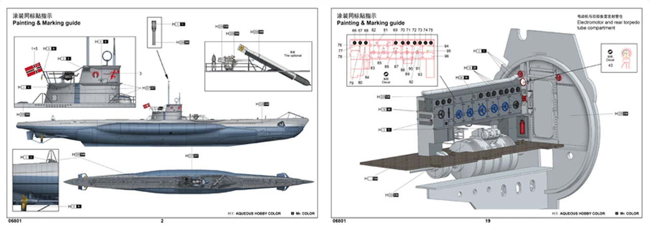 – Fully detailed interior includes front and rear living rooms, transmitter receiver room, sonar room, central control room, diesel engine room, electromotor and rear torpedo tube compartment