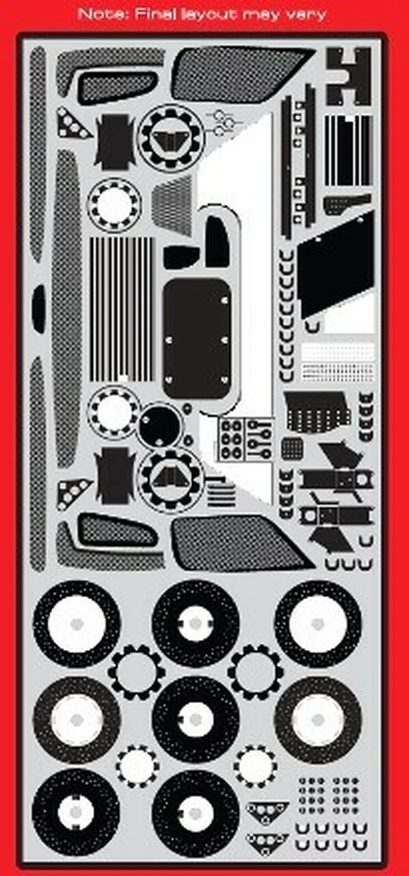 1/12 scale. The Enzo PhotoEtch Set consists of 3 full sheets with extensive, highly detailed components for brakes, radiator, engine bay, cockpit and chassis.