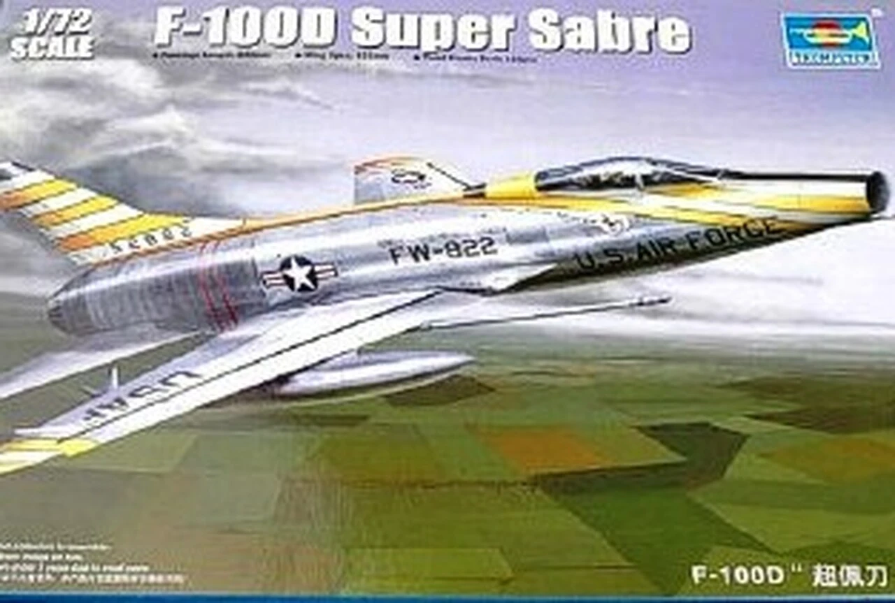 The F-100 was the USAF first supersonic fighter. It made its initial flight on May 25, 1953, and the first production aircraft was completed in October 1953. The Super Sabre became the first fighter to attain level flight supersonic speed, doing so during its maiden flight. The F-100 became operational in September 1954. North American built 2,294 F-100s before production ended in 1959. The F-100D was a version of the F-100 family subject to a number of improvements, including increased wing and vertical tail area, additional electronic equipment, autopilot, provision for “Buddy” tanker refueling equipment, two 450 gallon external tanks, and inboard landing flaps.