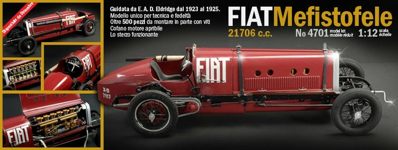 Designed by Ernest Eldridge, the FIAT Mefistofele was a standard car chassis equipped with an army surplus 6-cylinder, 320 PS, FIAT A.12 airplane engine. Eldridge drove the car to a new land speed record of 143mph in 1924. This was the last land speed record to be set on a public road and it set off a storm of automotive development. The characteristic shape of the Mefistofeleāan engine with wheelsāis an eye-catching marvel well deserving of a space on discerning collector’s walls.