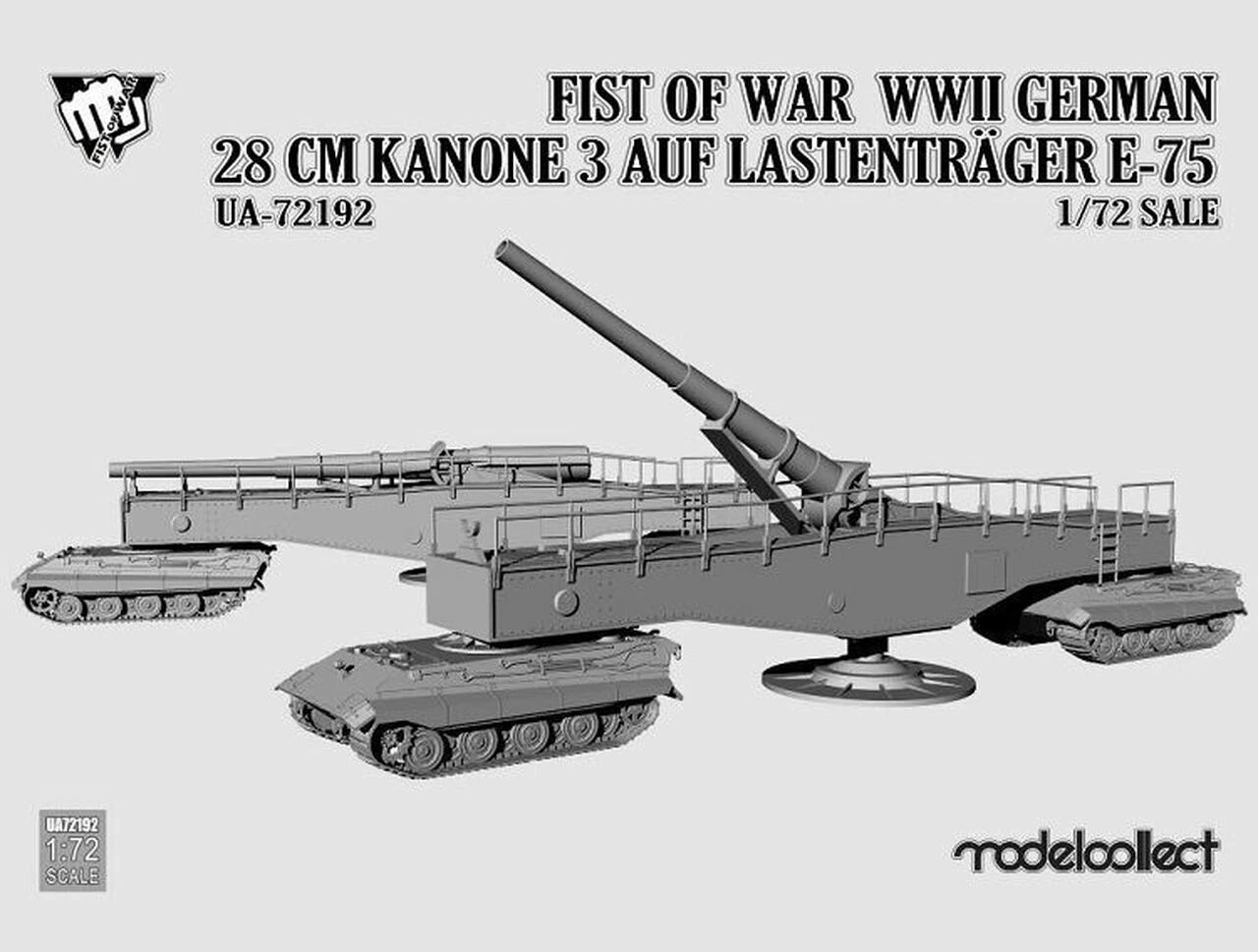 Fist of War WWII German 28cm Kanone 3 Auf Lastentrag E75 Heavy Gun 1/72 Modelcollect
