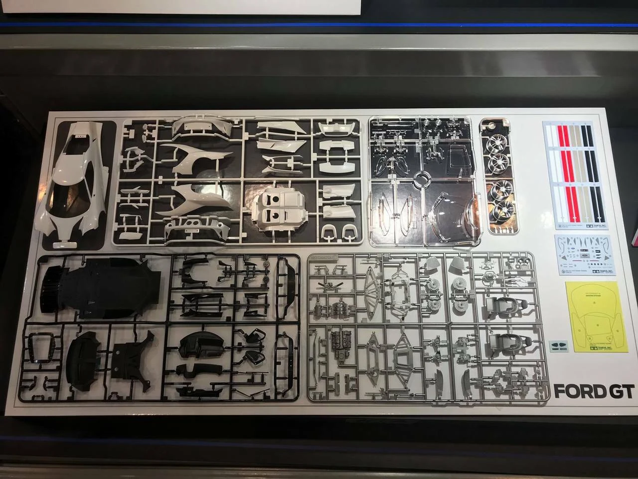 Ford poured their expertise into the carbon fiber body, endowing it with highly refined aerodynamics and an alluring teardrop shape incorporating sweeping rear fenders and unique buttresses, plus an active rear wing. The 647 horsepower 3.5-liter EcoBoost V6 engine offers awesome power and exemplary response, making this street-legal car equally at home on the racetrack. Tamiya’s model replica faithfully captures all these details thanks to the FORD Motor Company and the real-world example that Tamiya’s car designers examined in Southern California. The end result is a replica that is sure to provide car modelers a rewarding building experience and an exquisite model to display.