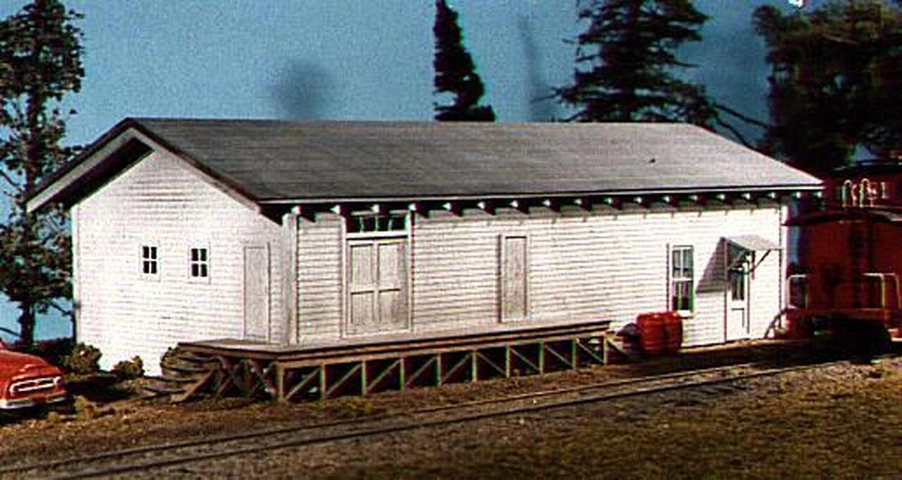 HO Scale. A terminal storeroom, a freight depot and office warehouse, a small railroad station, a trucking company office/dock, etc…..You choose! The super-detailed loading dock is a unique and interesting addition! 8 Long x 4 Wide x 3.5 High.