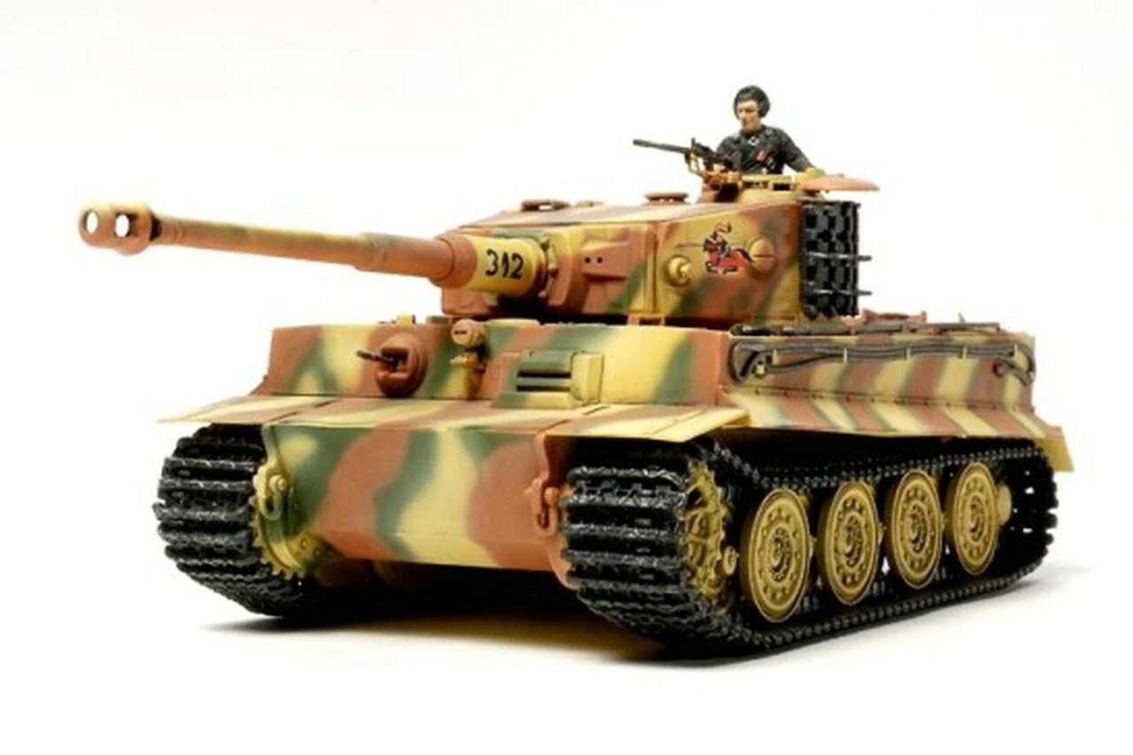 The German Tiger I Tank featured a powerful 88mm gun as well as excellent armor and was the greatest opponent to Allied forces during WWII. The late production version incorporated large steel road wheels with built-in rubber rings and an overhauled turret with periscope in front of the loader’s hatch, the commander’s viewport replaced by seven individual periscopes, and ventilators moved to the center for improved efficiency. Tamiya now brings this iconic kit, previously only available in 1/35 scale, to the 1/48 Military Miniature Collection series line-up.