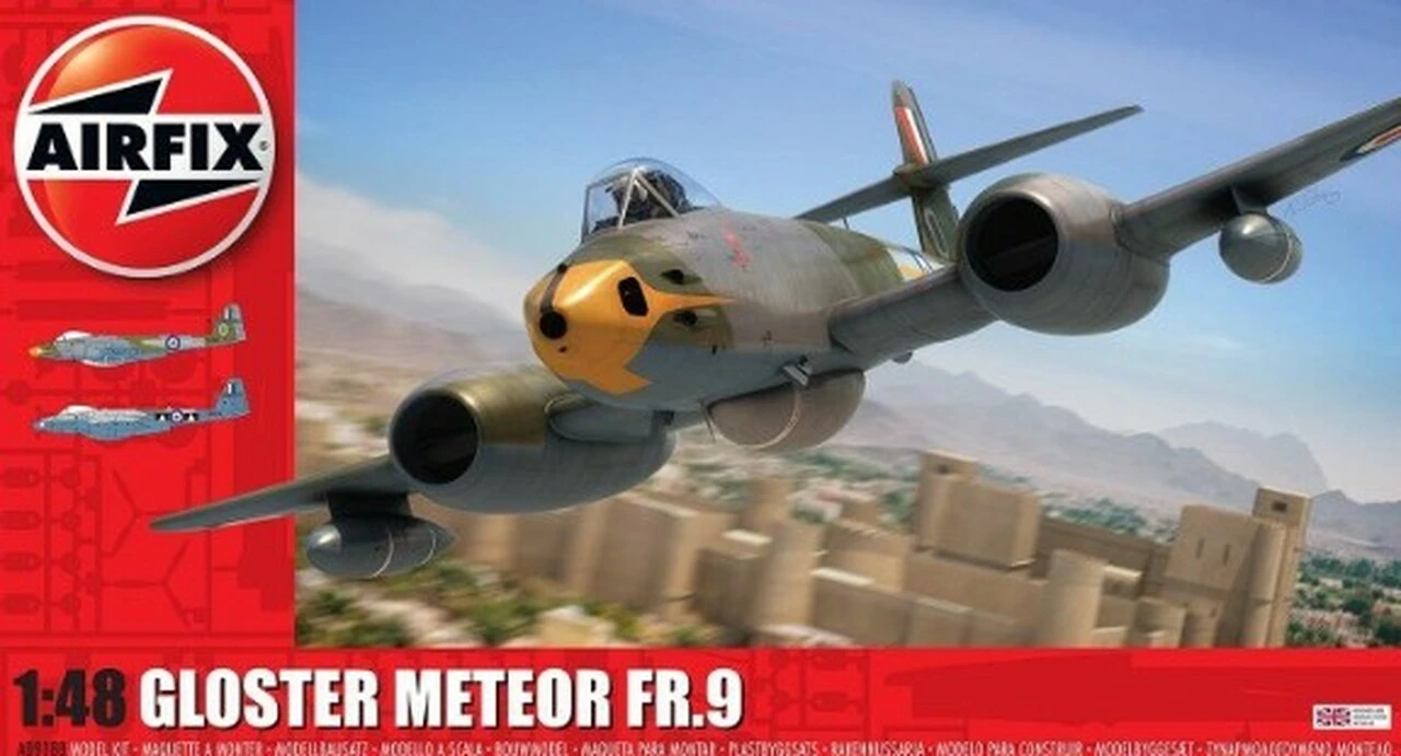 As the armed reconnaissance version of Britain’s first operational jet fighter, the Gloster Meteor FR.9 was based on the F.8 fighter version of the aircraft and replaced Spitfires and Mosquitos in this role. The extended nose housed a Williamson F.24 camera, which could be positioned to fire either forward, port of starboard facing. Its range was extended significantly by the addition of external wing and ventral fuel tanks.