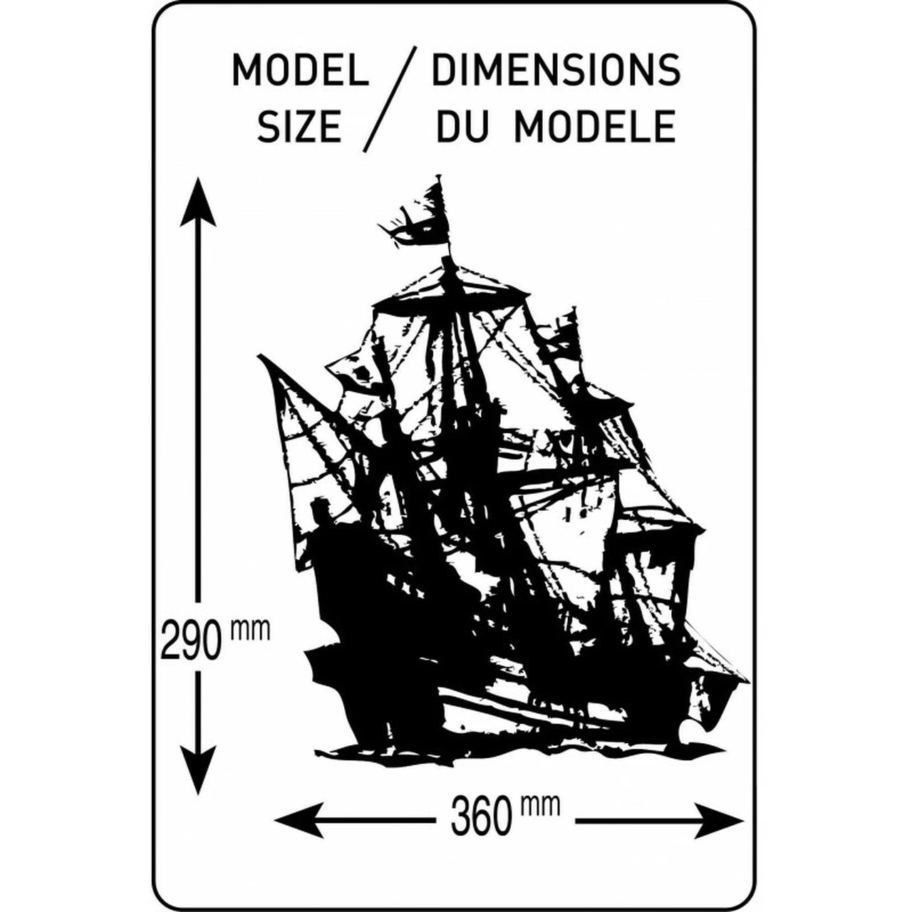 360mm (14″) long x 290mm (11.4″) tall when complete.