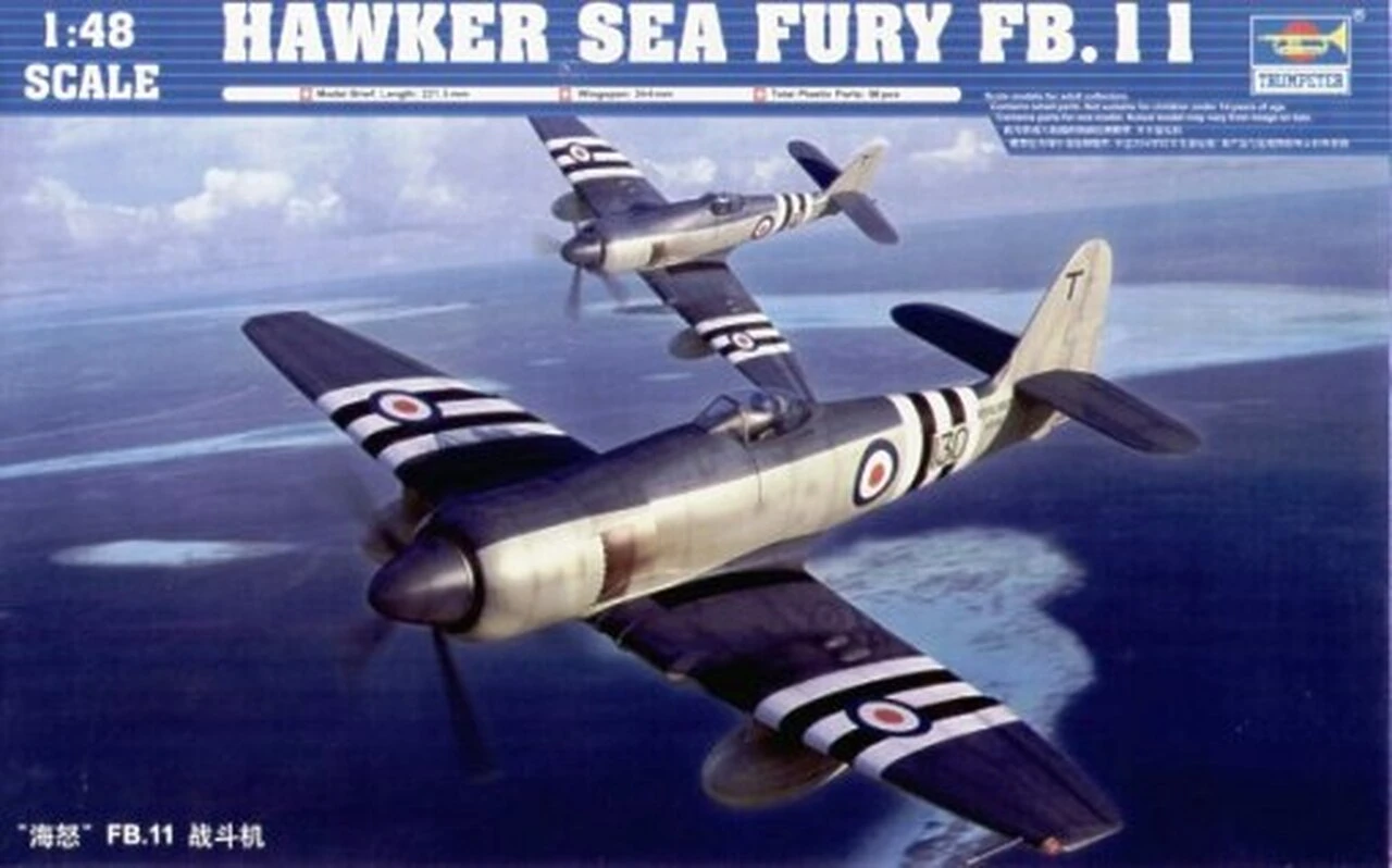 The first Sea Fury prototype, powered by a Bristol Centaurus XII, had first flown in February 1945, but the first fully-navalized version with folding wings did not fly until October 1947. The Boulton Paul contract was cancelled in early 1945, and of the 100 Sea Furies that remained on order, the first 50 were completed under the designation Sea Fury Mk.X. In May 1948, the first Sea Furies became operational with No. 802 Squadron, in the form of the Sea Fury FB.Mk.11, of which 615 were built. At least 66 of these were delivered to Australia and Canada. Early in the Korean War, Sea Furies operated very successfully in the ground attack role from the decks of Royal Navy aircraft carriers. The RN also received 60 two-seat T.Mk.20 trainers in the early 1950s. Sea Furies were exported to several other countries including the Netherlands, Pakistan, Egypt, Burma, Cuba and Iraq.
