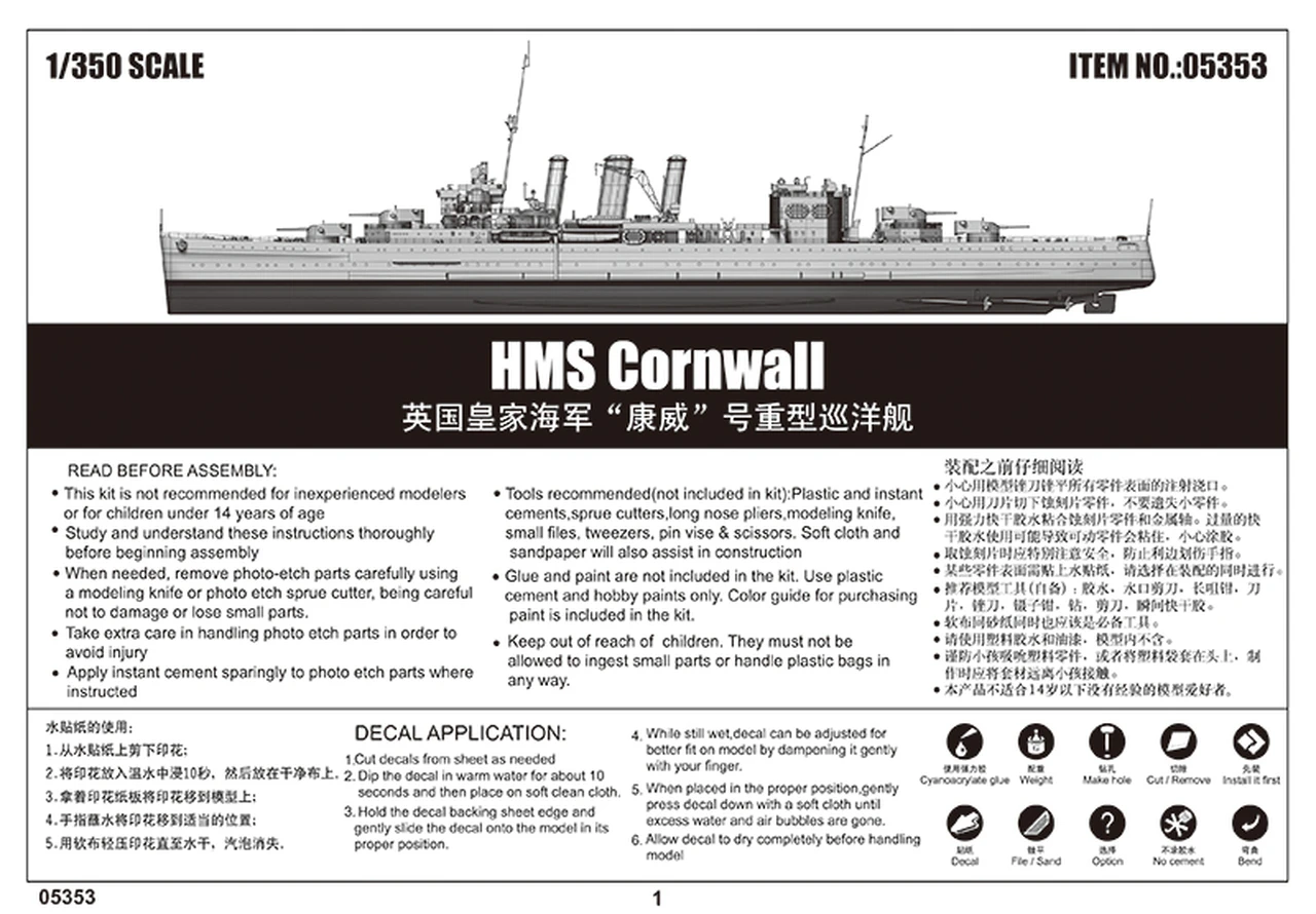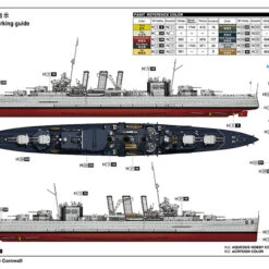 HMS Cornwall was a Royal Navy ship completed in 1928 at the Davenport shipyard and undergoing modernizing modifications from 1935-38. She remained in service until 1941 at the local fleet level. In 1941-42 she served in the Royal Navy in the East against the Japanese fleet. HMS Cornwall was finally sunk on April 5, 1942 by the Japanese First Air Flotilla in waters southwest of Ceylon, Colombo.