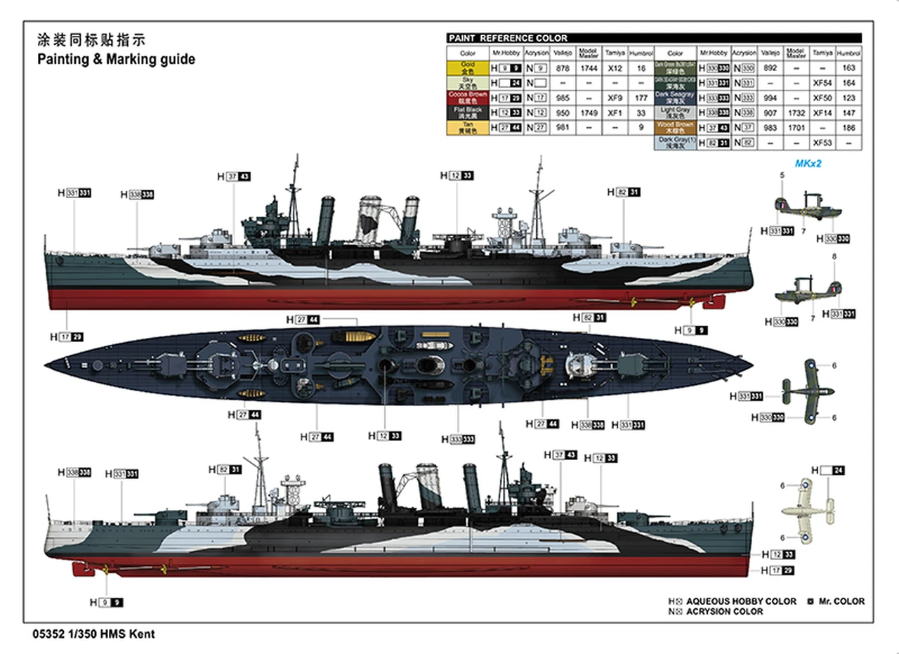 HMS Kent is a Royal Navy heavy cruiser, the first ship in the Kent class, which is a subtype of the County class. Upon completion the ship was sent to China. In late 1939 she could be found in the eastern Indian Ocean participating in the hunt for the German pocket battleship Admiral Graf Spee. She was transferred to the Mediterranean in mid-1940, but shortly after arriving was torpedoed and then repaired for a year. After the repairs were completed she remained in service with the local fleet and intercepted enemies in fleet guarding tasks. The ship retired in 1946.