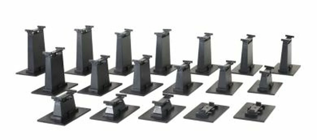 HO Scale. For higher HO elevations and On30 clearances. Durable plastic construction. Swivel track brackets for best track support. Removable bases designed for smooth floor or carpet. Pre-drilled nail holes for permanent installation. Compatible with most other popular track and roadbed system. Illustrated assembly guide.