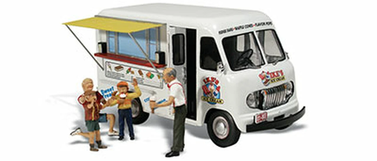 Capture the classic designs and simple lifestyles of the 1940s and ’50s. Each finely crafted, hand-painted automobile, figure and accessory adds color, interest and authenticity to any layout, diorama or project. True 1:87 HO scale models. Ike needs only to ring the bell and the kids come running! Truck wheels spin. Set includes 3 children and Ike attached to the exit door of the truck.