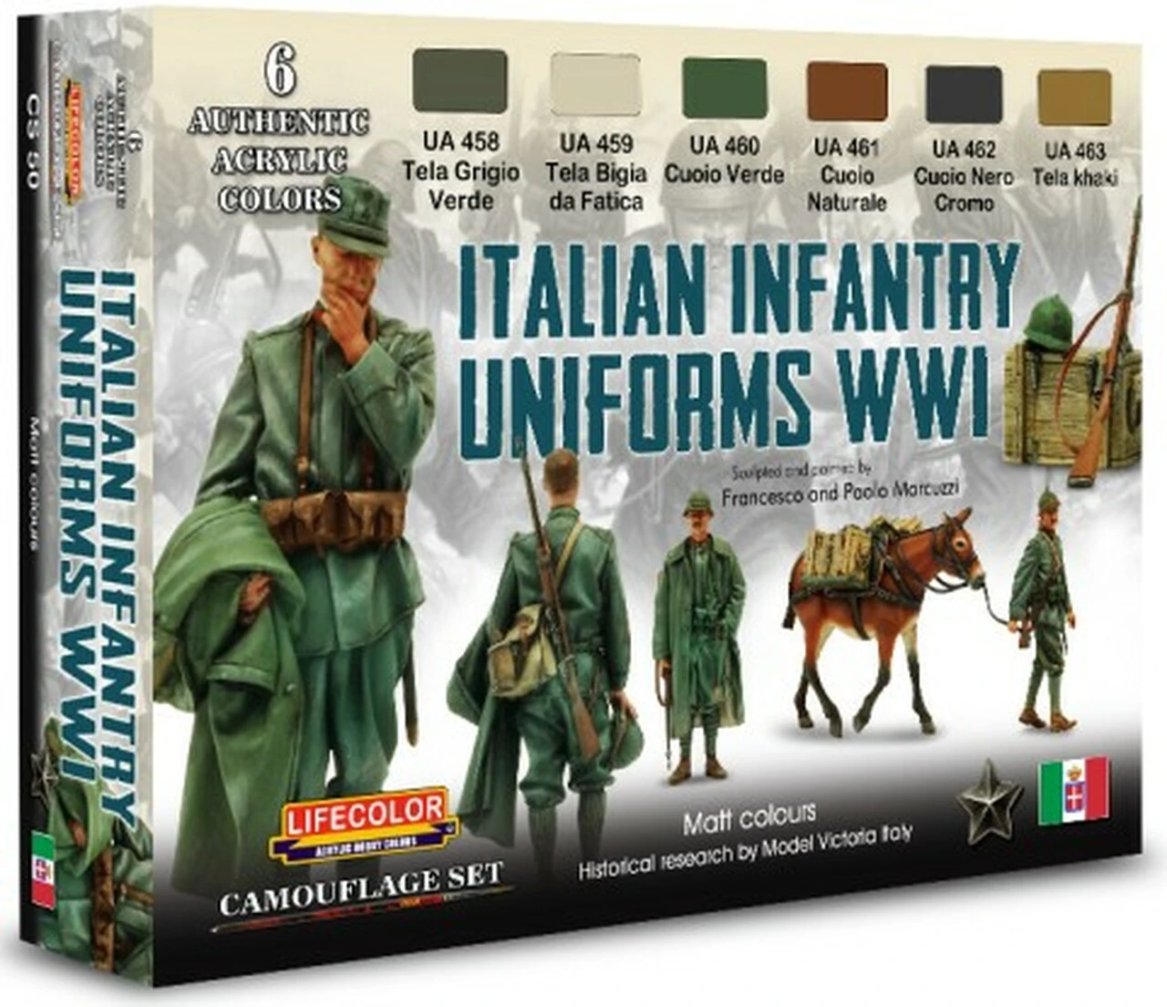 Italian WWI Infantry Uniform Camouflage Acrylic Set (6 22ml Bottles) Lifecolor