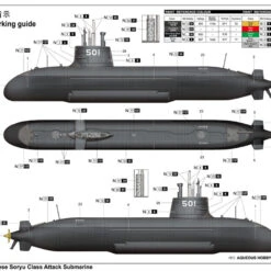 The Japanese Soryu class of twelve non-nuclear submarines (SS) was all built in the Kobe shipyards of Mitsubishi and Kawasaki. The first two boats were commissioned in 2009 and 2010: Soryu (SS-501) and Unryu (SS-502). They inherited the names of Japanese aircraft carriers from WWII. This class has the largest tonnage displacement of any JMSDF vessel since the Second World War. Updated from the Oyashio class, diesel-electric Soryu uses four Stirling Air-Independent Propulsion (AIP) engines, two Kawasaki diesel engines and two electric motors. Armament includes Type 89 & UGM-84 Harpoon anti-ship Missiles (AShM).