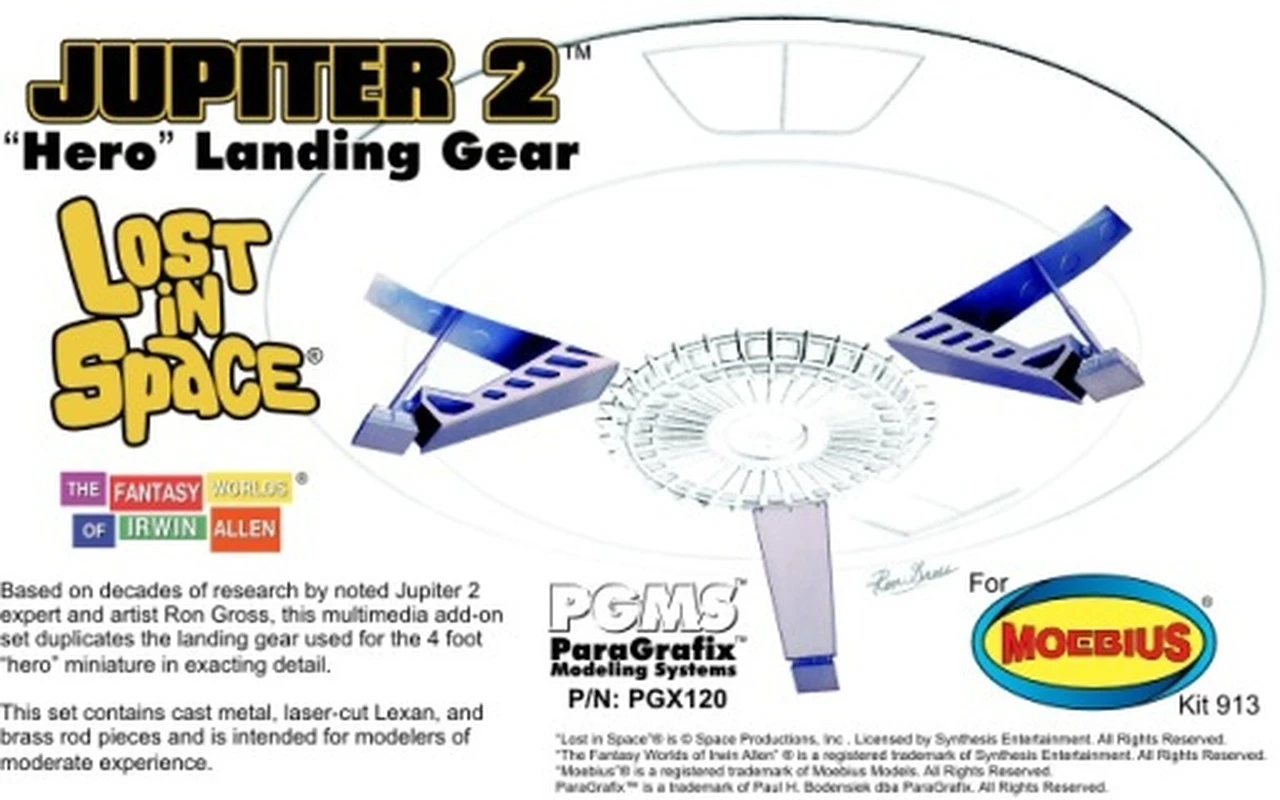 1/35 Scale. This multimedia add-on set duplicates the landing gear used for the 4 foot “hero” landing gear. Including cast brass and laser-cut Lexan pieces, this easy-to-assemble set provides the ultimate in authenticity. For Moebius Models Jupiter 2, kit 913.