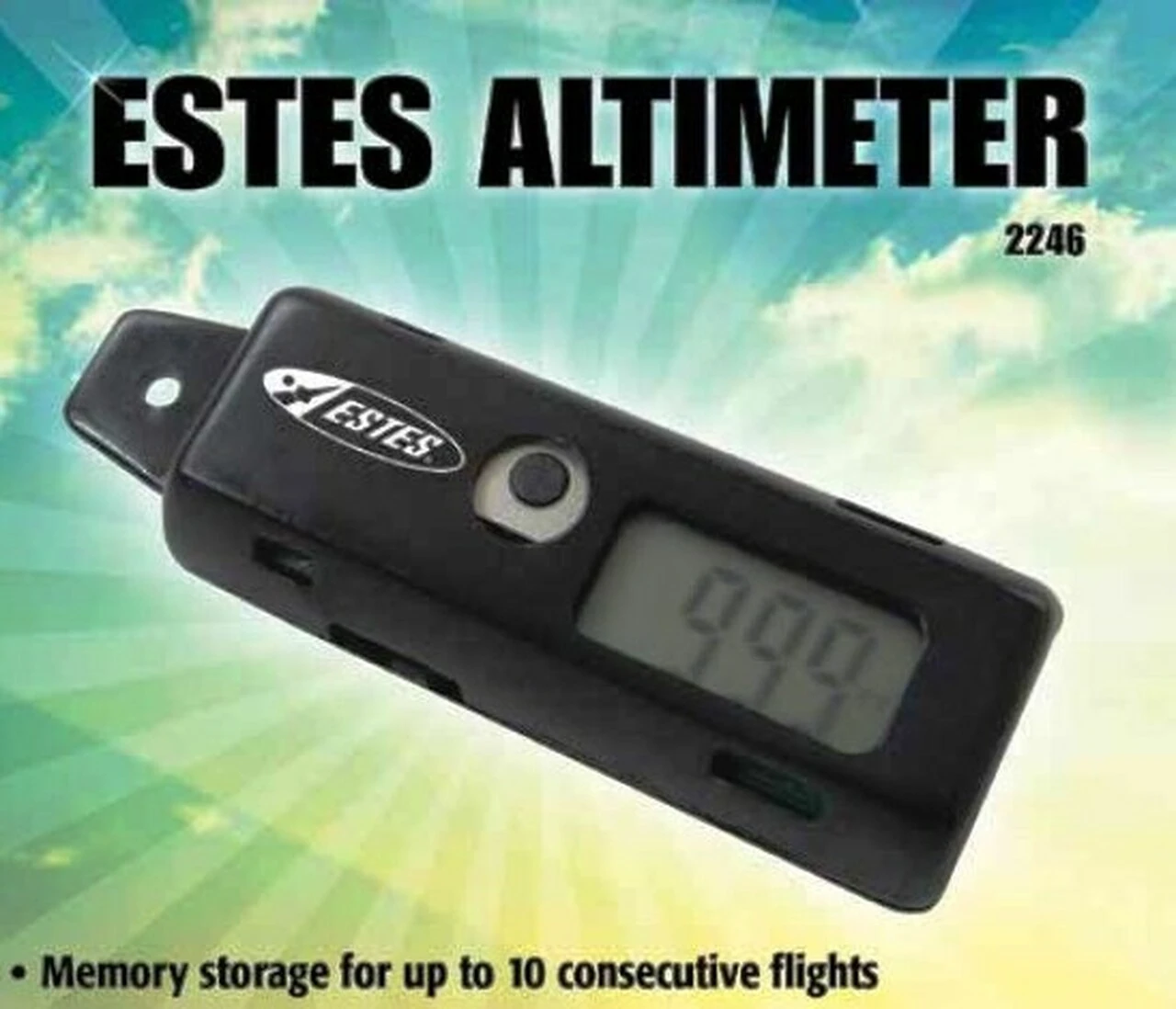 One piece fully assembled unit. Sophisticated and lightweight electronic payload for accurately measuring your model rocket altitudes from 0 – 9999 ft. Features 4 digit LCD read out and displays in English or metric units. Memory storage for up to 10 flights. Blister carded.