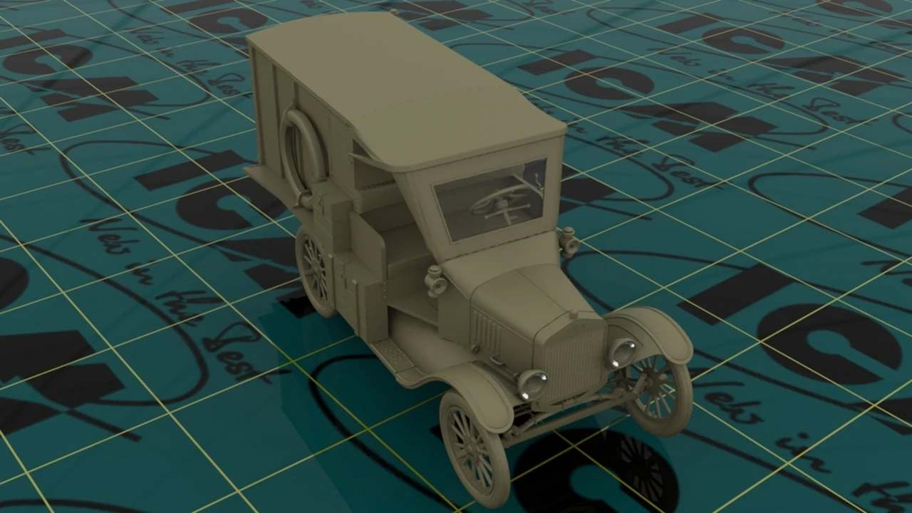 One of the most numerous and famous cars in world history is the Model T, produced by the Ford Motor Company. It was the first mass-production car affordable to the middle class. The first example was built in September 1908. It had a 22.5hp four-cylinder engine. Over 15 million were built between 1908 and 1927. Model T’s were produced in different types. In 1917 it became a base for an ambulance. Its light weight made it well-suited for use on muddy and shell-torn roads in forward combat areas. By November 1918, 4362 Model T ambulances had been shipped overseas. It was the most common Allied ambulance during the war.