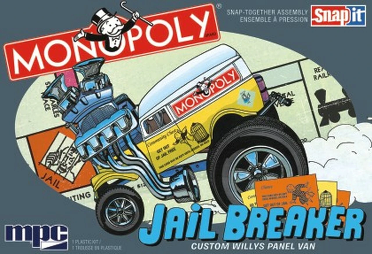 GREAT KIT FOR NEW MODELERS: MPCâs Monopoly Jail Breaker Custom Willys Panel makes for a great project, and with pictorial instructions and easy snap-together assembly, itâs easy enough even for inexperienced builders. Start collecting and building today!