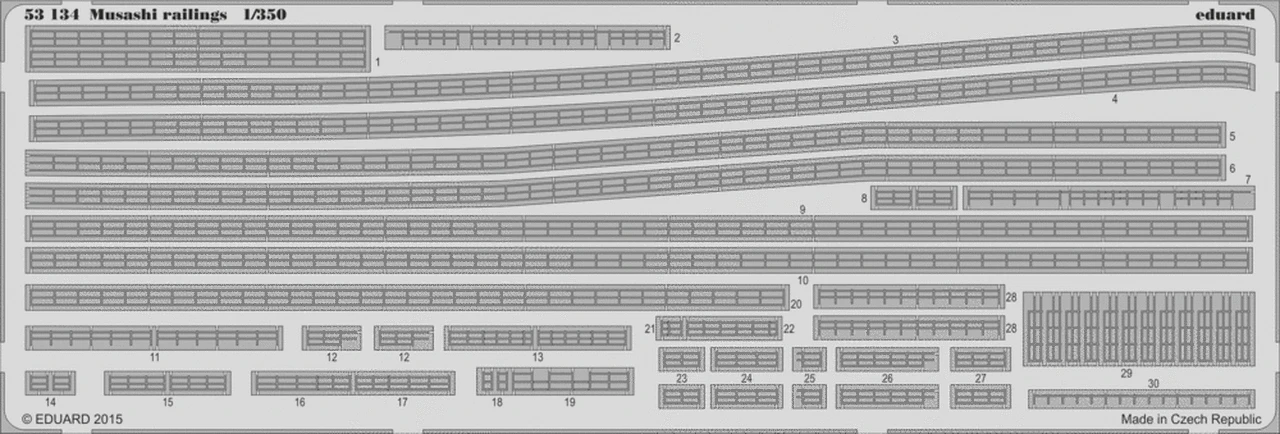 One sheet of photoetched parts for Tamiya’s 1/350th scale Musashi.
