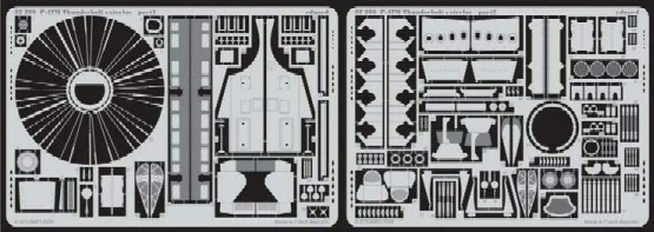 1-32 Scale. Eduard photoetch sets are carefully developed. These sets contains parts for adding details that are lacking in the kit or replacing parts in the kit. The thickness of the brass plate is 0.16mm or 0.2mm. The parts are etched in 2 levels to give some detail and depth. The parts are then given a thin nickel coating to stop oxidation and to help glues and paint to stick better.