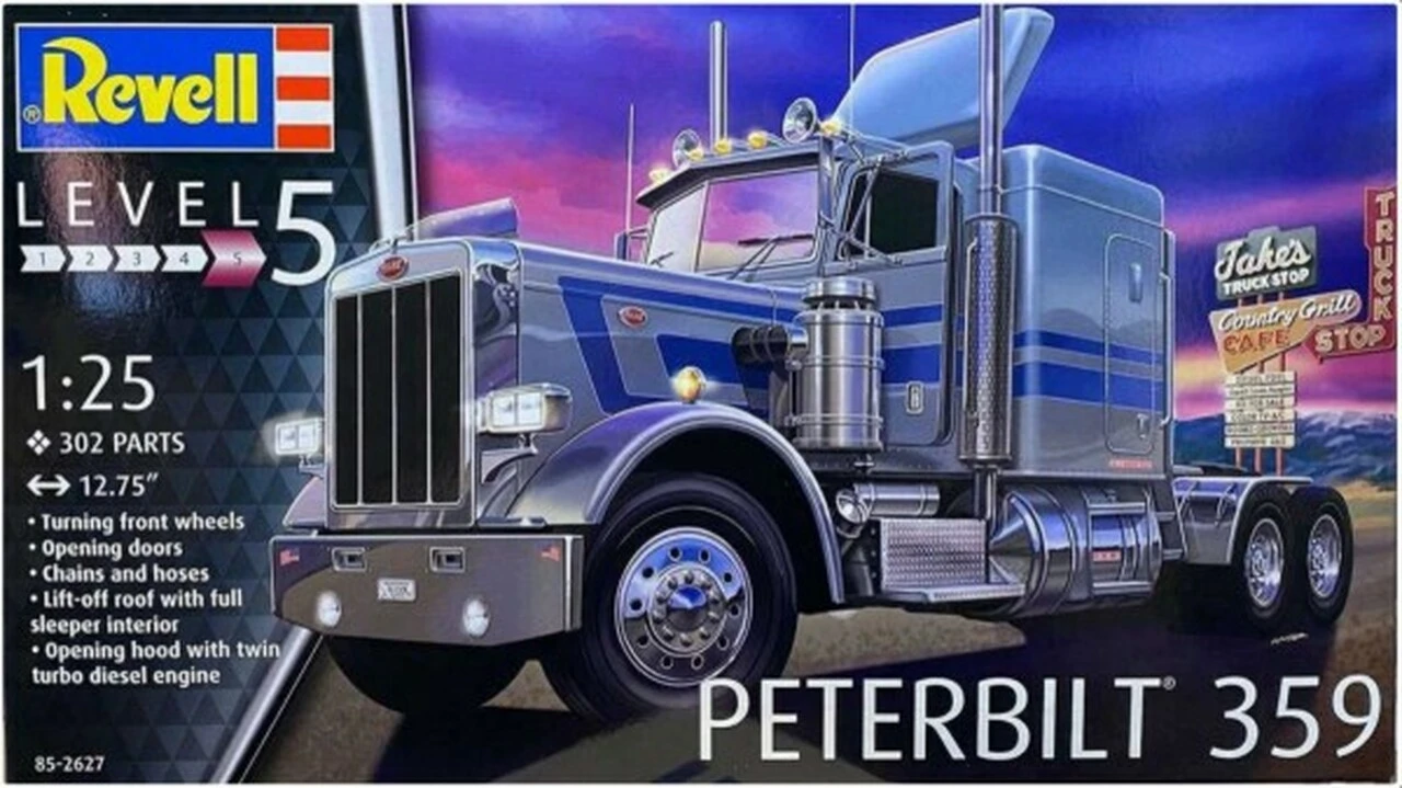 Since its establishment in 1939, Peterbilt® has been one of the leading manufacturers of high quality heavy goods vehicles in the USA. All Peterbilts are built to the same standards of quality, both inside and out. The highly adaptable 359 Conventional was designed especially for long distance hauling. The Peterbilt 359 “Bull Nose” is a typical American truck with a powerful engine and lots of chrome. Its focus on high performance trucks with low maintenance requirements and a long service life, qualities particularly evident in the 359 Conventional, allows Peterbilt to maintain its prominent position in the U.S. truck market.