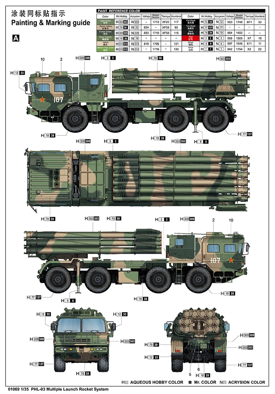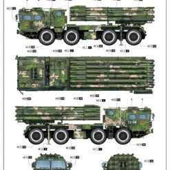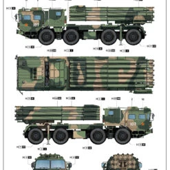 The PHL-03, also referred to as the Type 03, multiple launch rocket system is a Chinese version of the Russian BM-30 Smerch. It was developed by NORINCO and reportedly entered service with the Chinese army in 2004 – 2005. Currently it is one of the most powerful artillery rocket systems in the world. The PHL-03 is also being proposed for export customers as the AR2. It is in service with Morocco (one battalion with 36 units). The PHL-03 retains the original Russian configuration with 12 tubes for 300mm rockets. The standard rocket weighs around 800kg. Some sources claim that its maximum firing range is 150km, however it is most likely to be up to 100km. The PHL-03 is based on a Wanshan WS2400 8×8 special wheeled chassis. This military vehicle has good cross-country mobility. It is fitted with a central tire pressure system which can be adjusted on the move.