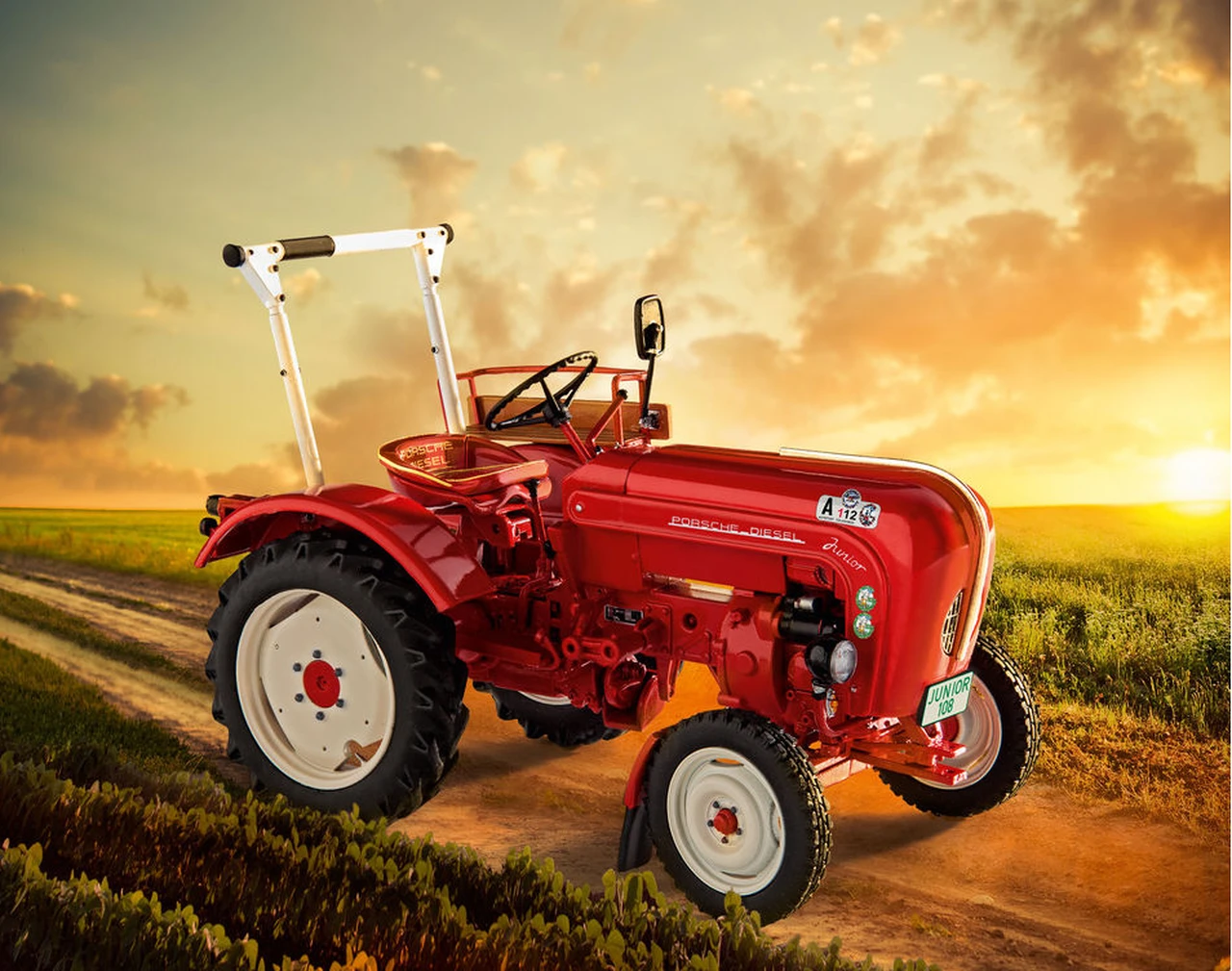 An easy to build model construction kit of the legendary and robust Porsche Junior 108, which was manufactured by Porsche-Diesel Motorenbau GmbH from the late 1950s.