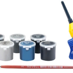 Plastic model kit starter set. Includes cement and acrylic paints required for assembly.