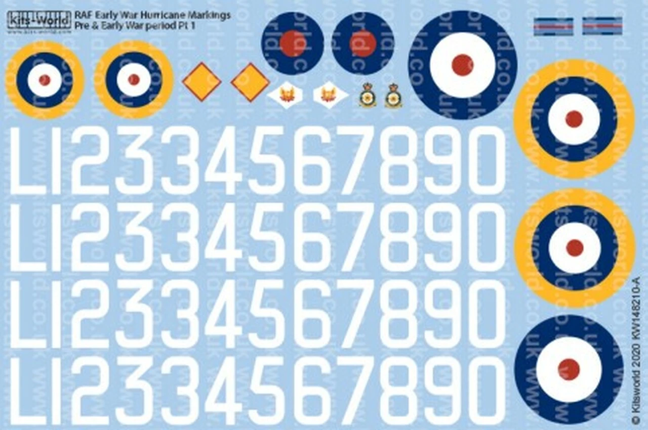 Pre-Early WWII Serial & Cocarde Hurricane RAF Markings 1938-1940 (3 Sheets) 1/48 Warbird Decals