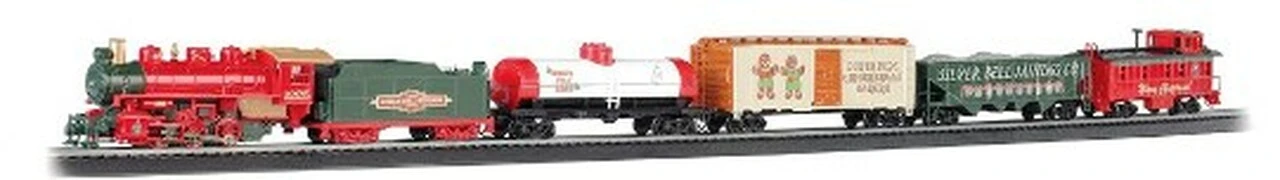 The Jingle Bell Express rushes last-minute wishes from the North Pole to homes around the world. Decked out in red and green and carrying a sweet cargo of holiday treats, the Jingle Bell Express will deliver merry dreams around your Christmas tree for years to come. HO Scale. Set includes a 0-6-0 steam locomotive with operating headlight and coal tender, a single-dome tank car, boxcar, quad hopper, off-center caboose, speed controller with plug in wiring, power pack, an illustrated instruction manual, and E-Z Track System to complete a 47″ x 38″ oval.