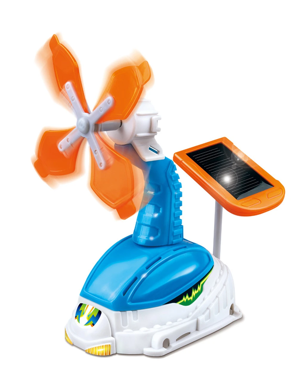 Children ages eight and up will utilize the colored instruction manual and over 115 pieces to build ten exciting models. What is most important, no batteries are required. Indoors or out, this kit operates 100% on renewable energy. With ? in 1 Renewable Energy Kit, the fun never has to end!