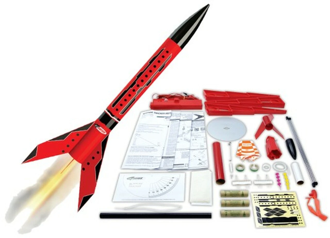 Includes an easy to assemble rocket with all pre-colored parts, launch equipment, three different engines, four starters, eight starter plugs and 12 squares of recovery wadding! Everything you need to conduct your very own STEM experiment!