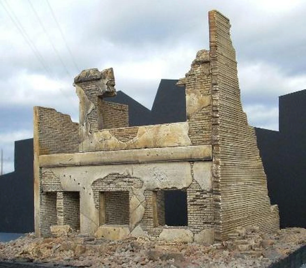 Ruined 2-Story Brick Apartment Building (8″x9″x9″) 1-35 Dioramas Plus