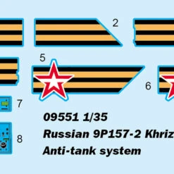 The 9P157-2 carries two 9M123 missiles on launch rails which are extended from a stowed position; the radar is also stowed during transit. The missiles are re-loaded automatically by the tank destroyer from an internal magazine with 15 rounds (missiles are stored and transported in sealed canisters) and can also accept munitions manually loaded from outside the vehicle. The manufacturer claims that three 9P157-2 tank destroyers are able to engage 14 attacking tanks and destroy at least sixty percent of the attacking force. The dual guidance system ensures protection against electronic countermeasures and operation in all climatic conditions, day or night. The 9M123 missile itself is supersonic, flying at an average speed of 400 m/s or Mach 1.2 and a range of between 400 and 6000 meters.